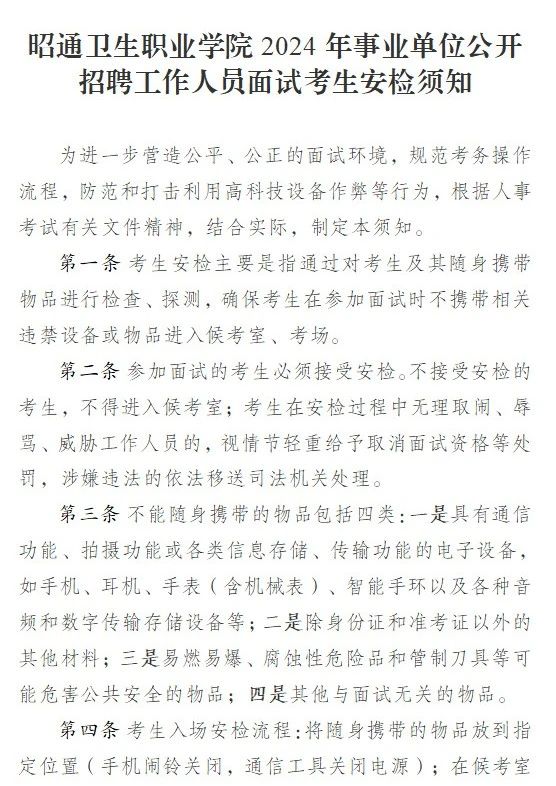 附件:1.昭通衛(wèi)生職業(yè)學(xué)院2024年事業(yè)單位公開招聘工作人員面試考生安檢須知