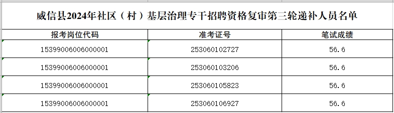 附件:威信縣2024年社區(qū)(村)基層治理專干招聘資格復(fù)審第三輪遞補人員名單