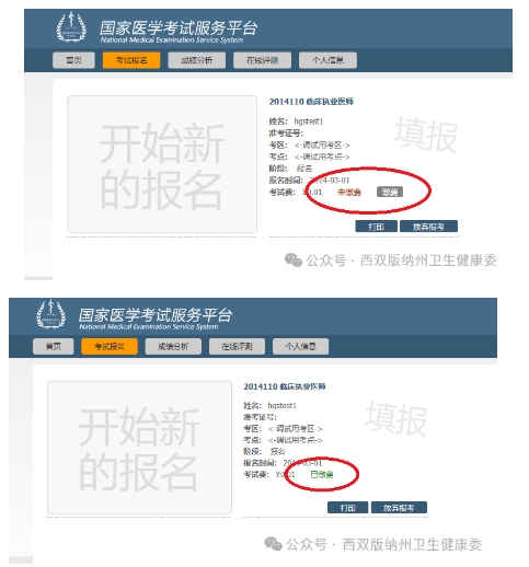 請考生及時關(guān)注“國家醫(yī)學(xué)考試中心官網(wǎng)考生服務(wù)端”,考區(qū)復(fù)審?fù)ㄟ^后即出現(xiàn)“繳費”灰色字樣,請點擊并按時完成繳費,出現(xiàn)“已繳費”綠色字樣即為成功(如圖)。已繳費但未顯示正確狀態(tài),可在繳費位置進行點擊刷新,如意外狀況無法解決請及時聯(lián)系工作人員。
