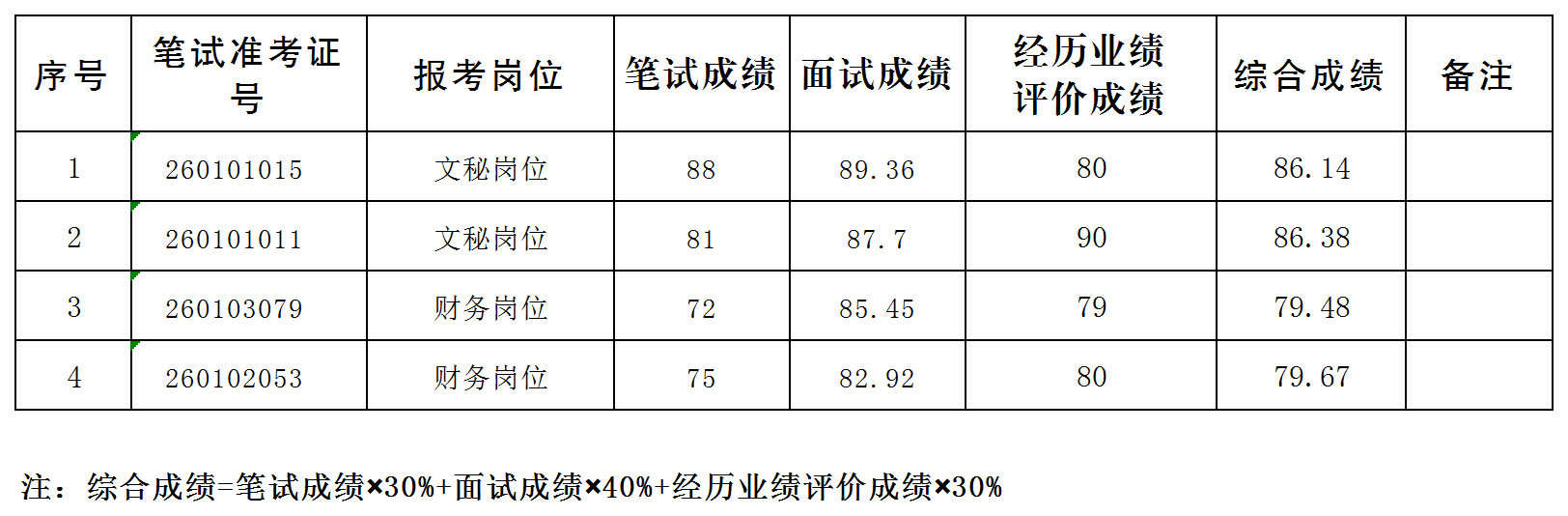 根據(jù)《政協(xié)文山州委員會(huì)辦公室2020年公開(kāi)遴選公務(wù)員公告》要求,經(jīng)過(guò)筆試、面試、體檢、經(jīng)歷業(yè)績(jī)?cè)u(píng)價(jià)和組織考察等環(huán)節(jié),現(xiàn)將進(jìn)入最后一個(gè)環(huán)節(jié)的考生綜合成績(jī)進(jìn)行公布。