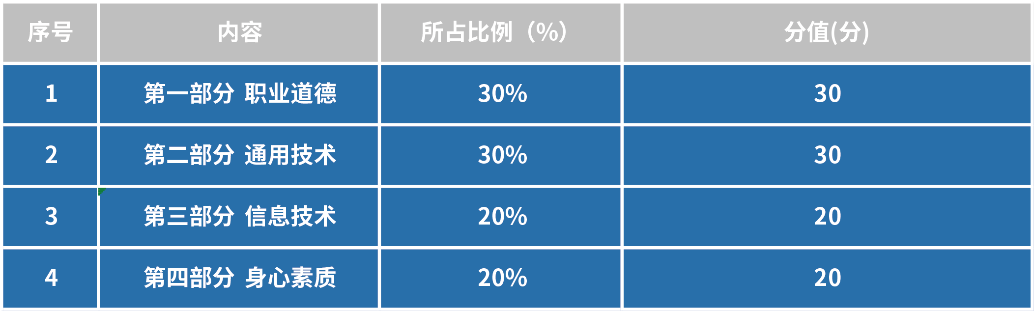 占50分,職業(yè)適應(yīng)性測(cè)試占100分。職業(yè)適應(yīng)性測(cè)試為選拔性測(cè)試,主要考查考生從事生產(chǎn)、建設(shè)、服務(wù)、管理等一線工作所必備的基本職業(yè)素質(zhì)或技能。