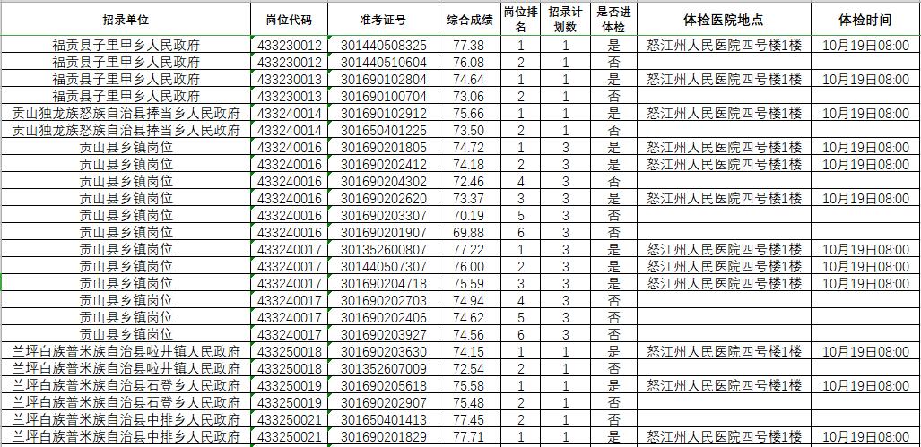 怒江州2020年度考試錄用公務(wù)員綜合成績及體檢人員名單公示