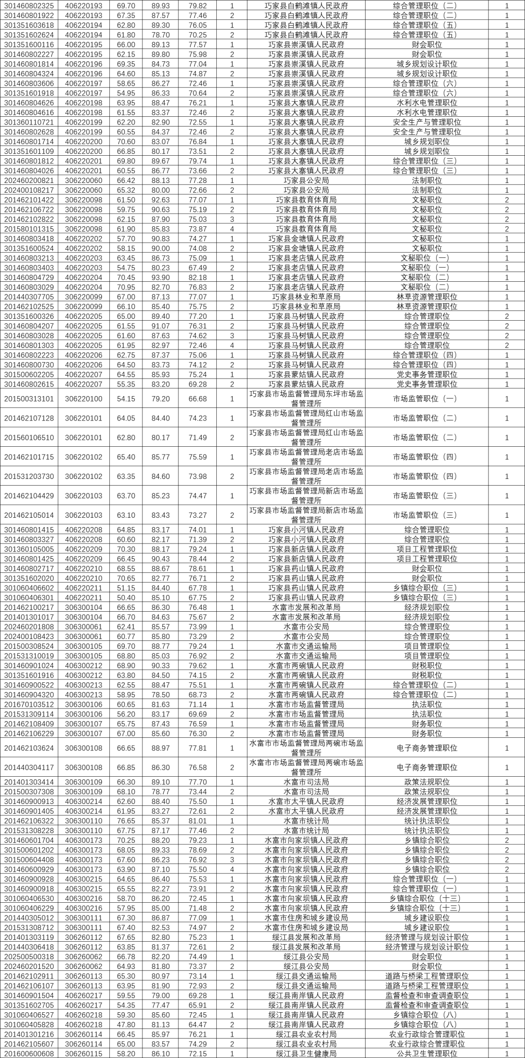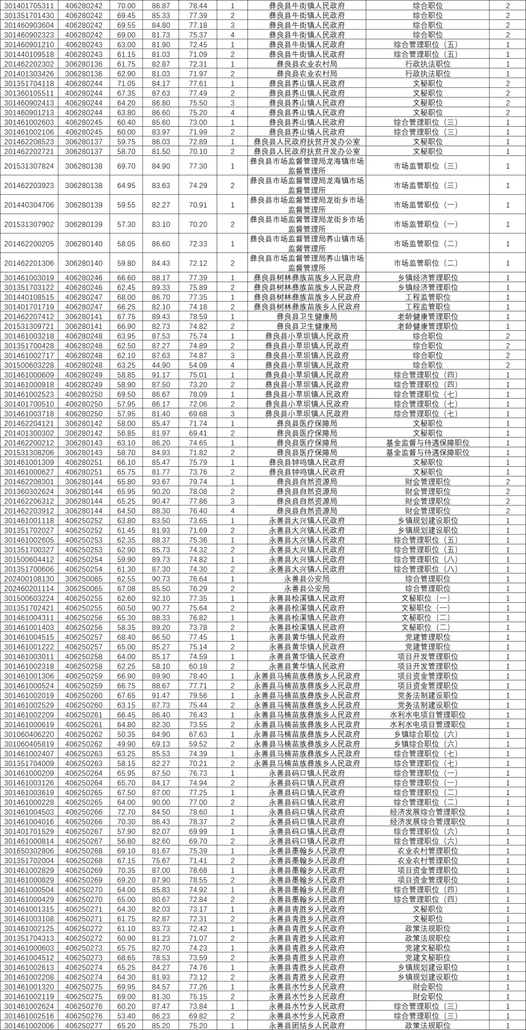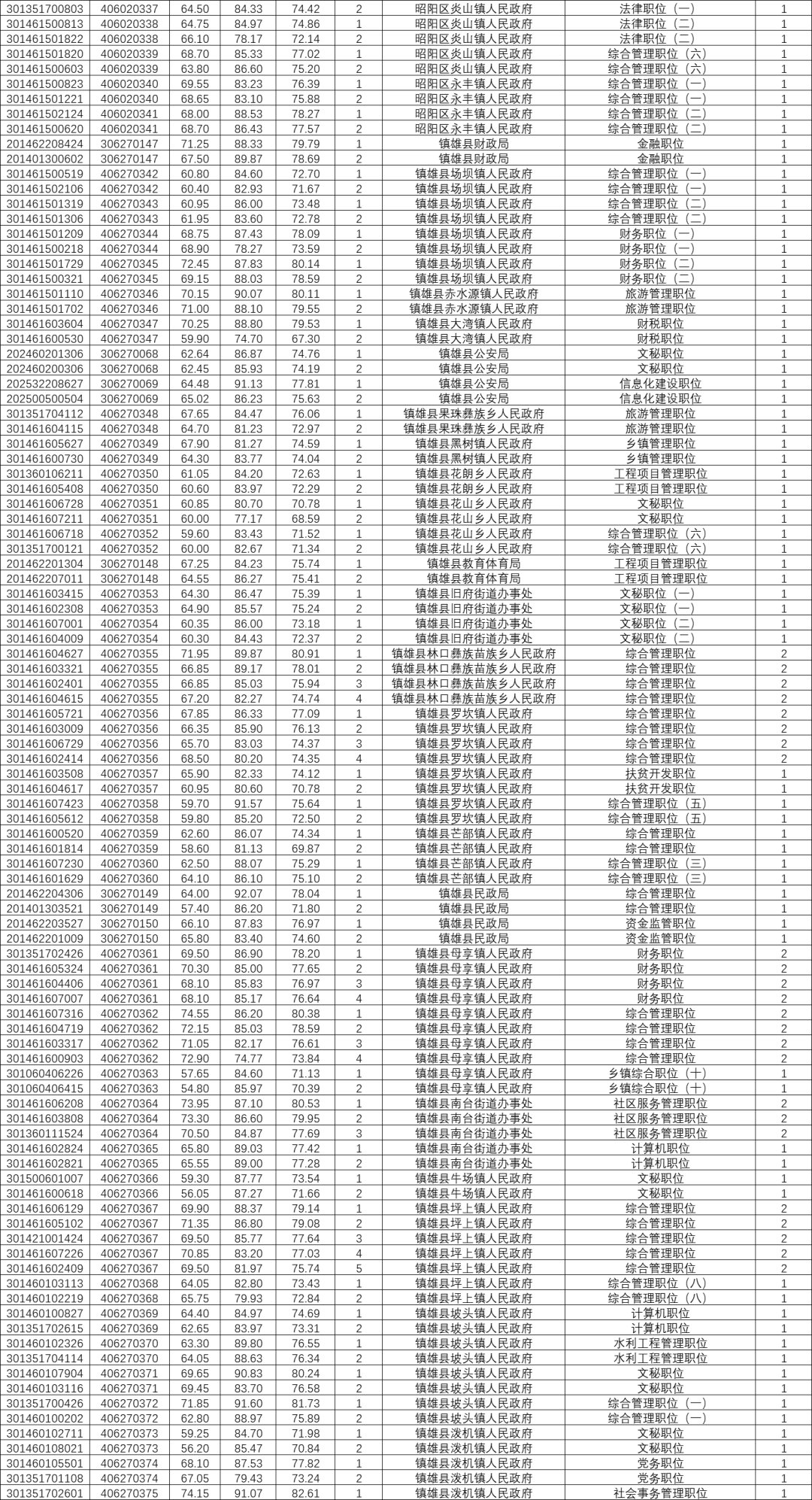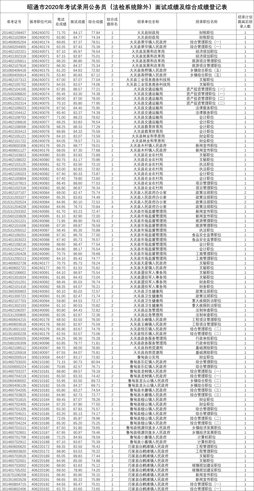 昭通市2020年考試錄用公務(wù)員(法檢系統(tǒng)除外)面試成績(jī)及綜合成績(jī)登記表