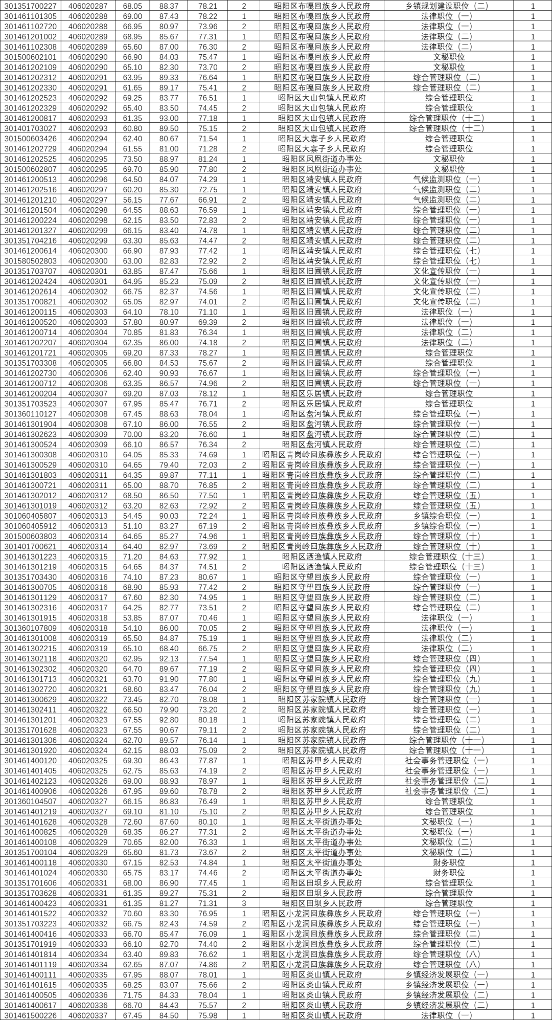 關(guān)于公布昭通市2020年考試錄用公務(wù)員