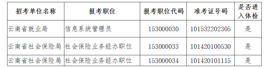 云南省人力資源和社會保障廳2020年公務員考試錄用體檢公告