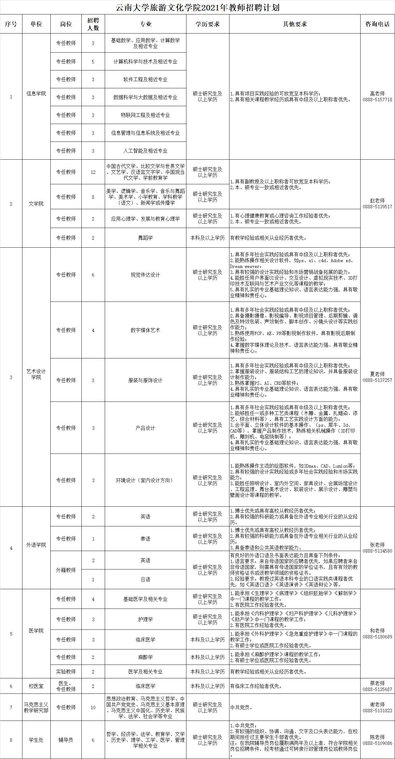 云南大學旅游文化學院2021年教師招聘啟事