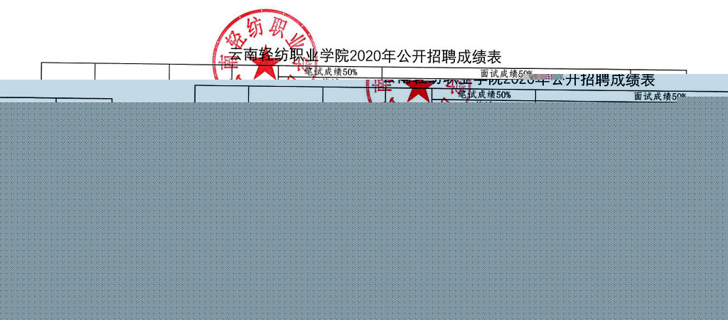 附件:云南輕紡職業(yè)學(xué)院2020年公開(kāi)招聘成績(jī)表