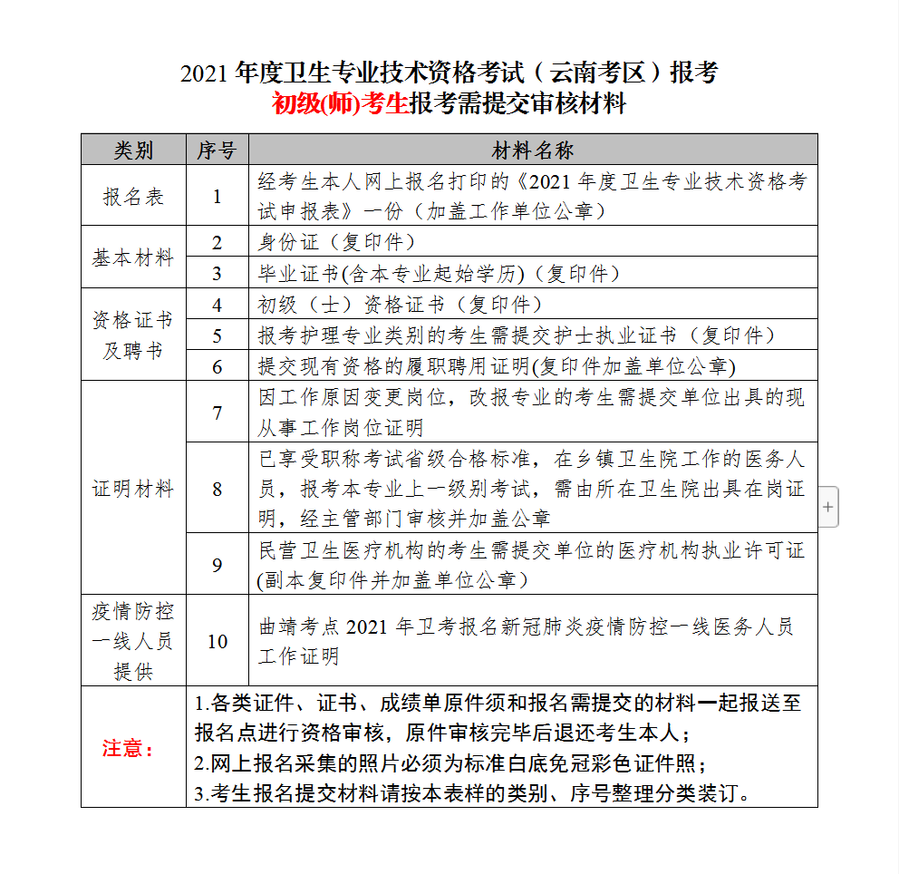 曲靖考點2021年衛(wèi)生專業(yè)技術資格考試報名注意事項(公告)