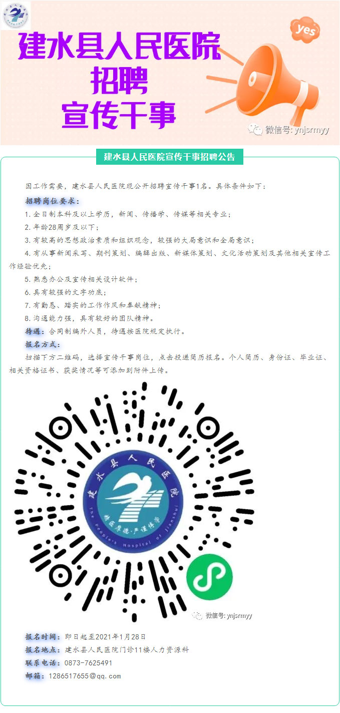 建水縣人民醫(yī)院宣傳干事招聘公告