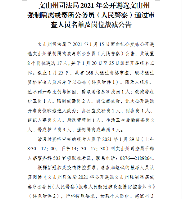 文山州司法局2021年公開(kāi)遴選文山州 強(qiáng)制隔離戒毒所