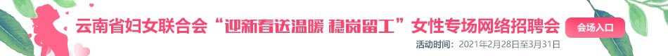 為貫徹落實(shí)黨中央、國務(wù)院和省委、省政府關(guān)于做好春節(jié)期間新冠肺炎疫情防控工作要求,鞏固來之不易的防控成果,按照《人力資源社會保障部、工業(yè)和信息化部、民政部、交通運(yùn)輸部、國務(wù)院扶貧辦、全國總工會、全國婦聯(lián)關(guān)于開展“迎新春送溫暖、穩(wěn)崗留工”專項行動的通知》和《云南省就業(yè)工作領(lǐng)導(dǎo)小組辦公室關(guān)于認(rèn)真做好“迎新春送溫暖、穩(wěn)崗留工”專項行動的通知》要求,降低疫情傳播風(fēng)險,做好在滇過年務(wù)工人員服務(wù)保障,確保就業(yè)局勢總體穩(wěn)定,云南省婦女聯(lián)合會決定開展“云南省‘迎新春送溫暖、穩(wěn)崗留工’女性專場網(wǎng)絡(luò)招聘會”,誠邀您的參與。具體情況如下: