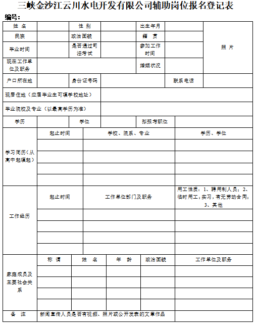 根據(jù)工作需要,三峽金沙江云川水電開發(fā)有限公司需增加輔助崗位人員15名,人員身份為編制外勞務(wù)派遣人員,現(xiàn)將招聘有關(guān)事宜公告如下: