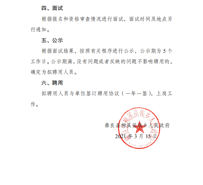 彝良縣柳溪苗族鄉(xiāng)人民政府公益崗位人員招聘公告