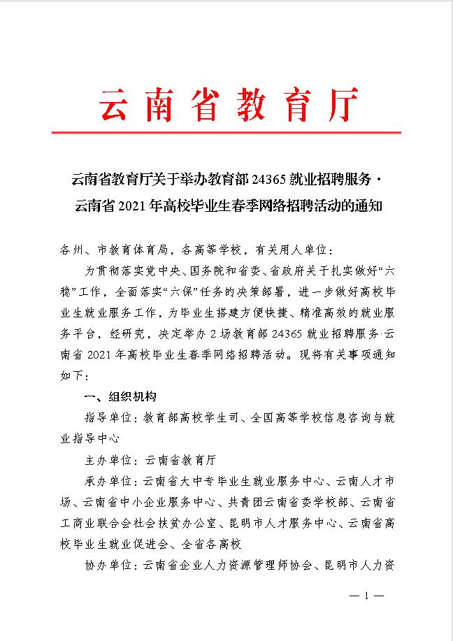 云南省教育廳關(guān)于舉辦教育部24365就業(yè)招聘服務(wù)·