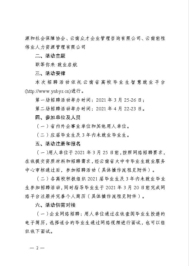 云南省 2021年普通高校畢業(yè)生春季網(wǎng)絡(luò)招聘活動的通知