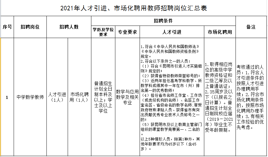 昆明滇池中學(xué)2021年人才引進(jìn)、招聘市場(chǎng)化聘用教師的公告