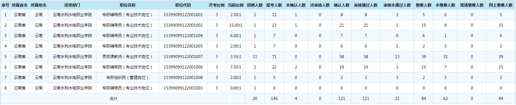 云南水利水電職業(yè)學(xué)院2021年公開招聘事業(yè)編制工作人員報(bào)名情況統(tǒng)計(jì)(截止4月25日16點(diǎn))