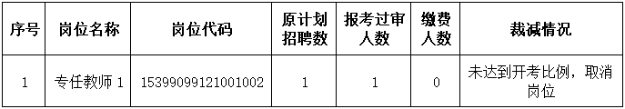 根據(jù)《云南特殊教育職業(yè)學(xué)院2021年公開招聘工作人員公告》的相關(guān)規(guī)定,對實(shí)際報(bào)名繳費(fèi)人數(shù)與計(jì)劃招聘人數(shù)比例未達(dá)到3:1的招聘崗位予以取消或相應(yīng)遞減招聘人數(shù),截至4月27日24:00報(bào)名繳費(fèi)結(jié)束,結(jié)合各崗位實(shí)際報(bào)名繳費(fèi)情況,現(xiàn)將崗位裁減情況公告如下: