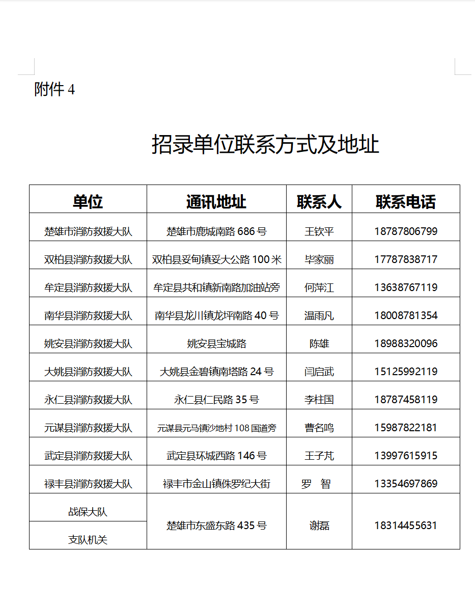 2、報(bào)名方式:按相應(yīng)崗位要求攜帶報(bào)名材料(附件3)到相應(yīng)縣(市)消防救援大隊(duì)(附件4)實(shí)地報(bào)名,填寫《楚雄州消防救援支隊(duì)合同制消防員報(bào)名登記表》。