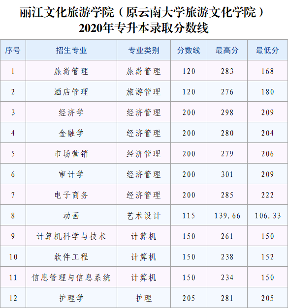 云南省2021年專升本統(tǒng)一考試各專業(yè)類別分?jǐn)?shù)線