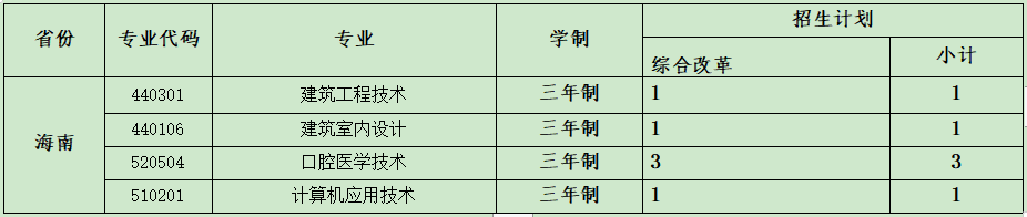 云南城市建設職業(yè)學院2021年省外招生計劃表