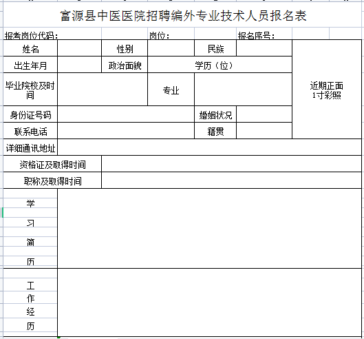 富源縣中醫(yī)醫(yī)院招聘編外專業(yè)技術(shù)人員報名表