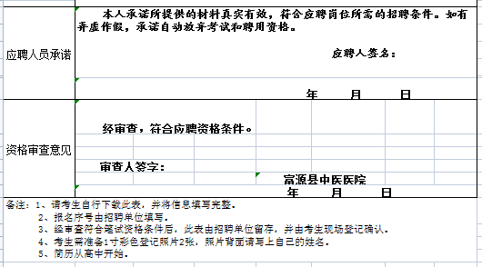1.報名表信息填寫。報名表可在富源縣中醫(yī)醫(yī)院官方網(wǎng)http://www.fyxzyyy.cn/自行下載,請各位考生按照填表要求認真填寫,字跡清晰,涂改無效。報名時請考生將報名表一并上交報名點。