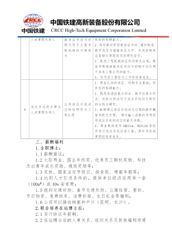 鐵建裝備2021-2022年高層次人才招聘簡章