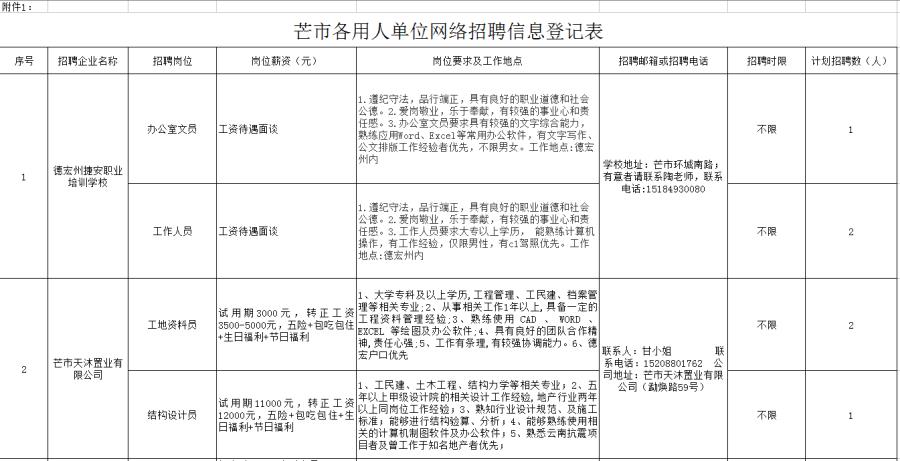 芒市2021年用人單位網(wǎng)絡(luò)招聘信息(第八期)