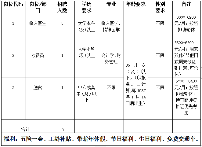 根據(jù)昆明市精神病院發(fā)展需要,現(xiàn)面向社會誠聘7名優(yōu)秀人才,本次招聘將委托第三方招聘服務機構(gòu)負責,采用公開發(fā)布招聘公告、報名、資格審查、筆試、面試、體檢、公示、錄用的程序進行,具體招聘公告如下: