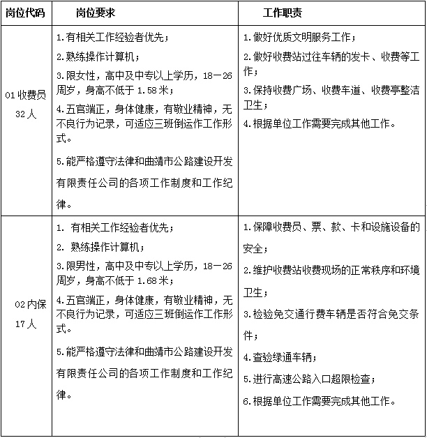 本次面向社會(huì)公開(kāi)招聘,招聘人數(shù)49人:收費(fèi)員32人,內(nèi)保17人。
