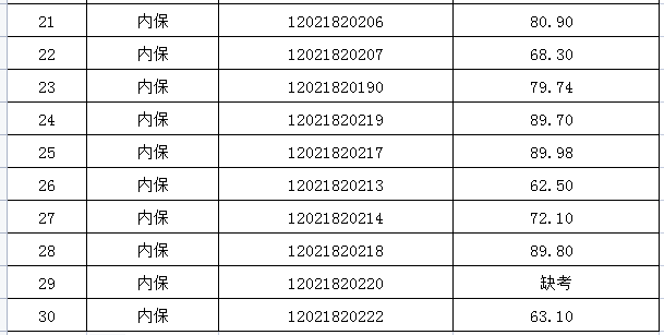 二、內(nèi)保崗位面試成績(jī)