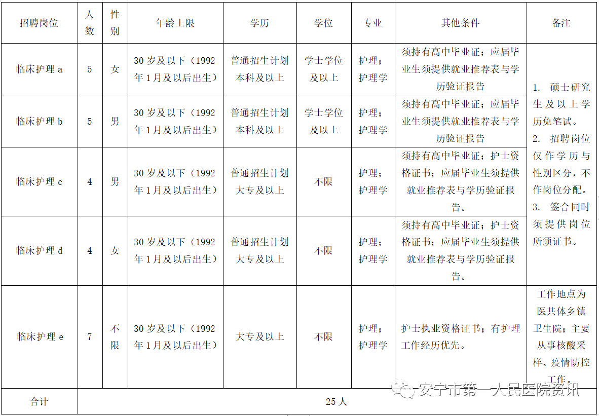 安寧市第一人民醫(yī)院2022年工作人員(非事業(yè)編制)招聘啟事