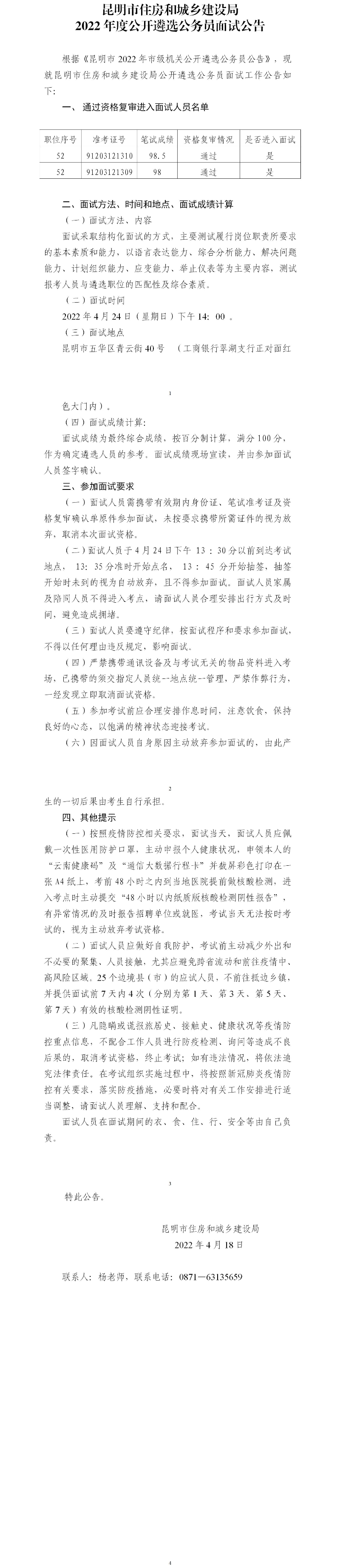 昆明市住房和城鄉(xiāng)建設局2022年度公開遴選公務員面試公告