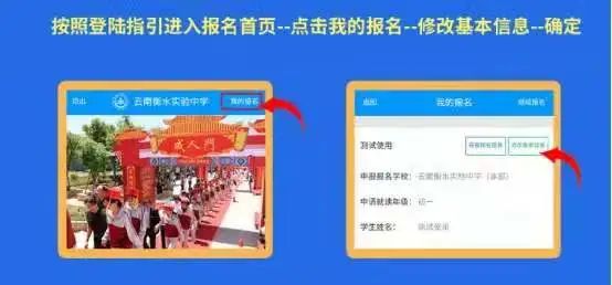 第五步:選擇登記校區(qū),填寫基本信息并提交(報名學(xué)校填寫:云南衡水實(shí)驗(yàn)中學(xué)西雙版納校區(qū))