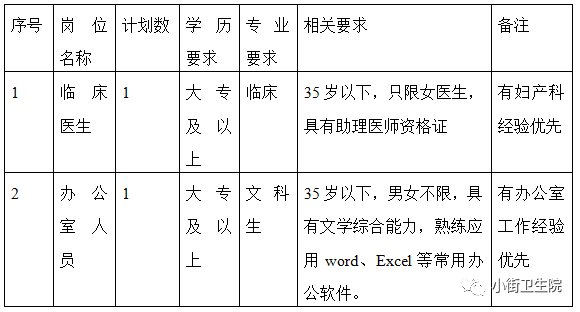 本次共招聘2人。其中辦公室人員1人,臨床醫(yī)師1人。詳見《景洪市小街衛(wèi)生院2022年編外人員招聘崗位表》(附件1)