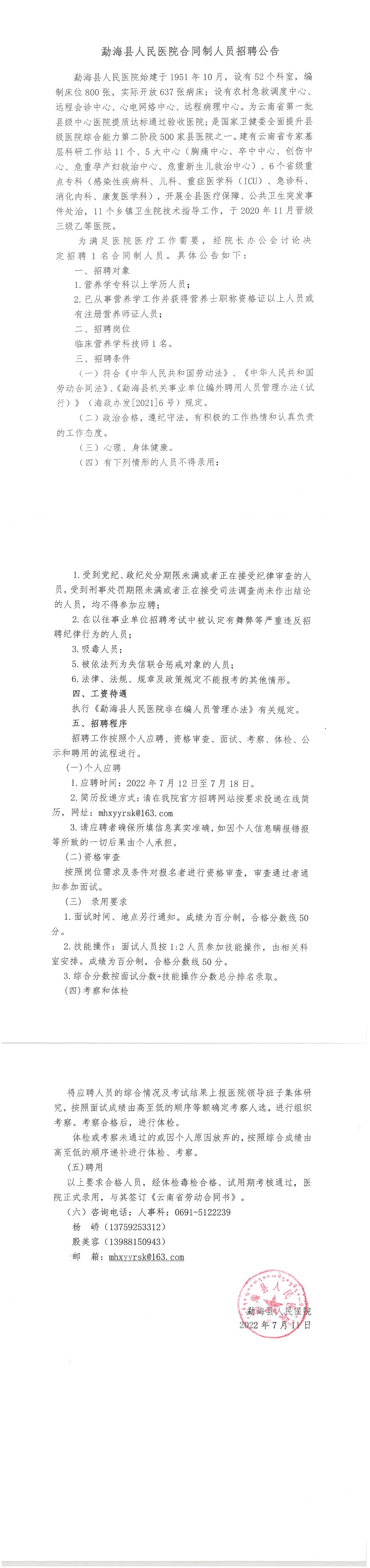 勐海縣人民醫(yī)院2022年合同制人員招聘公告