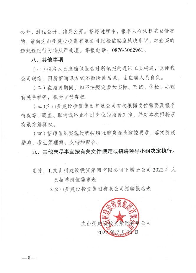 文山州建設(shè)投資集團有限公司下屬子公司2022年人員招聘公告