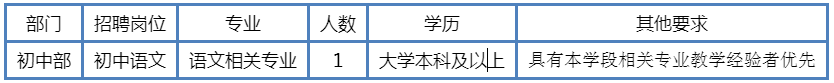 為了更好地滿足社會對優(yōu)質(zhì)教育資源的需求,學(xué)校辦學(xué)不斷發(fā)展,現(xiàn)面向全國招聘部分學(xué)科優(yōu)秀教師。簡況如下: