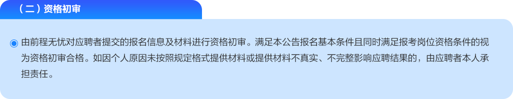 面試前需要進(jìn)行資格復(fù)審,擬進(jìn)入面試人員本人或持委托函的人員,須攜帶與報(bào)名時(shí)提交的報(bào)名材料一致的身份證、畢業(yè)證、學(xué)位證、學(xué)信網(wǎng)學(xué)籍在線驗(yàn)證報(bào)告、工作經(jīng)歷證明、應(yīng)聘登記表及招聘崗位要求的證書(shū)等材料的原件及復(fù)印件各一份至指定地點(diǎn)進(jìn)行現(xiàn)場(chǎng)復(fù)審。