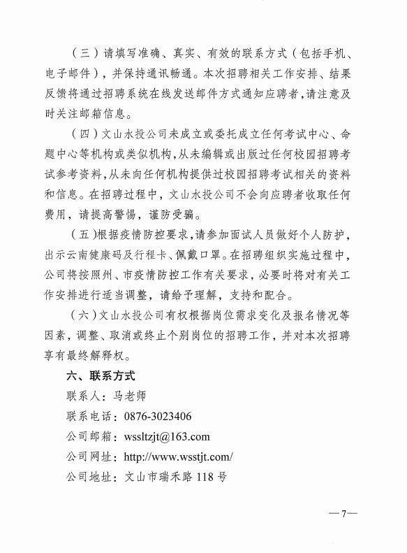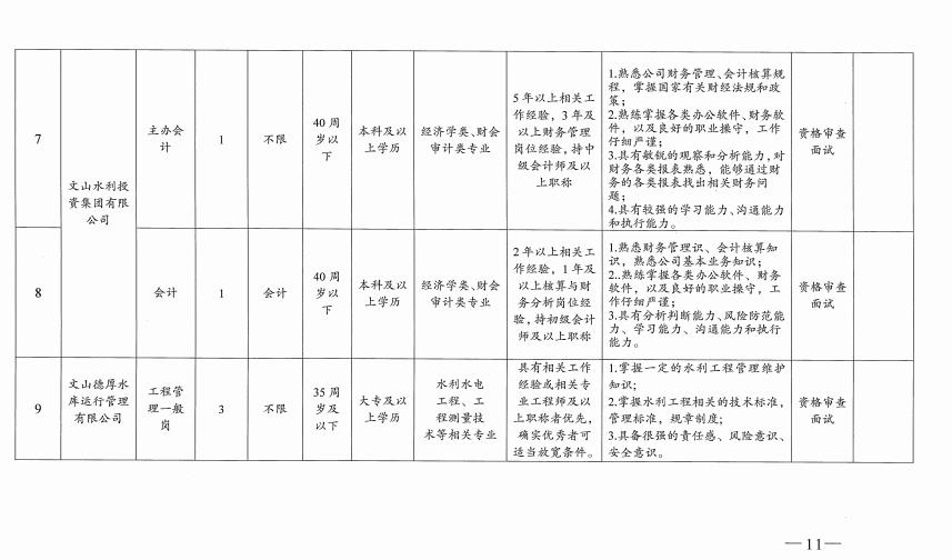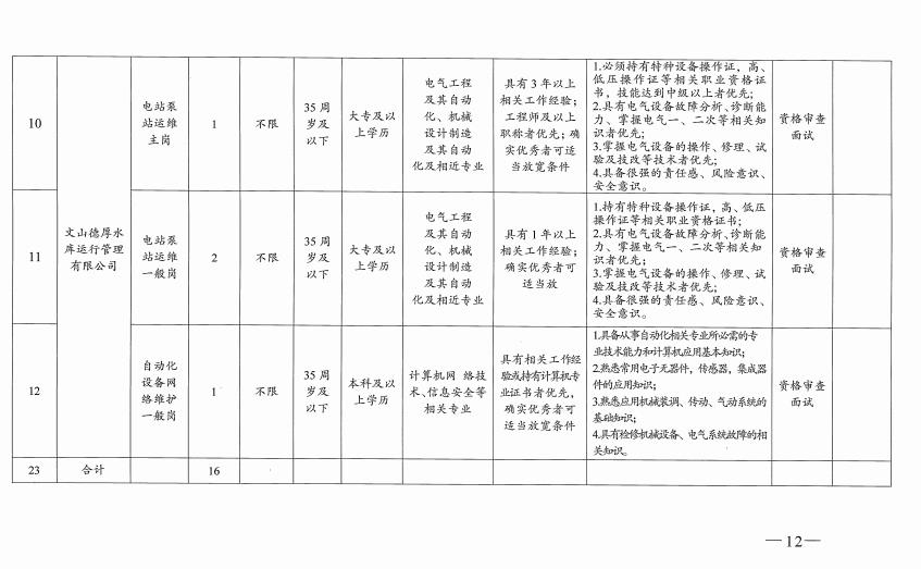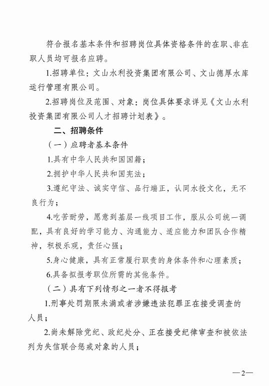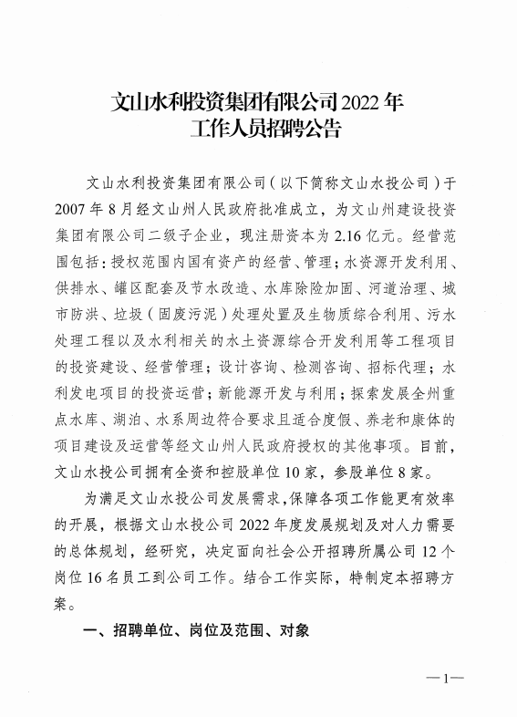 文山水利投資集團(tuán)有限公司2022年工作人員招聘公告