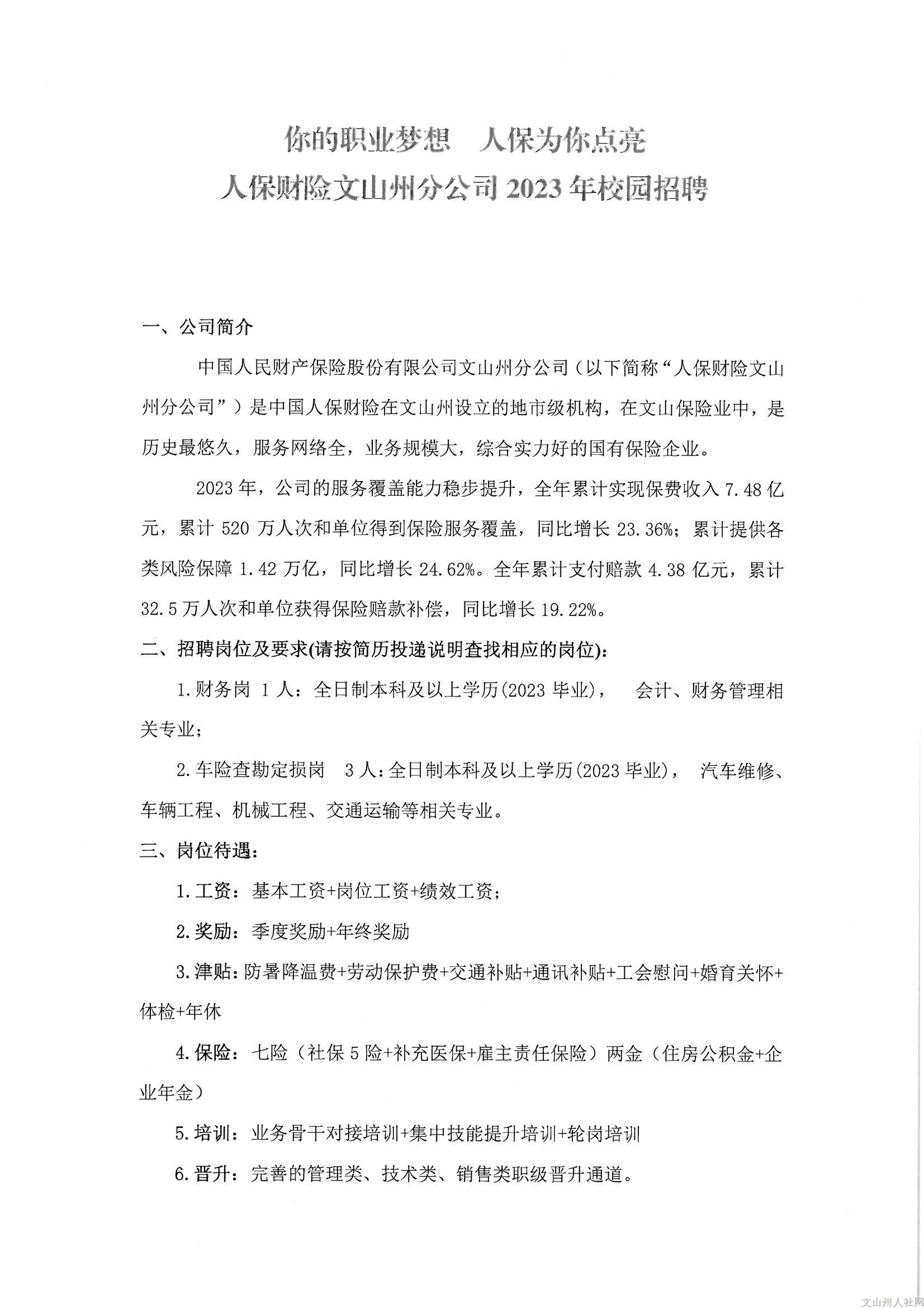 2023年人保財(cái)險(xiǎn)文山州分公司校園招聘