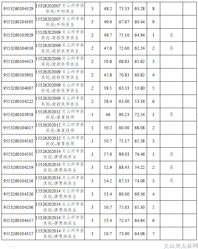 2023年文山州州屬事業(yè)單位公開選調(diào)工作人員面試成績(jī)和進(jìn)入下一環(huán)節(jié)人員名單(第九批)