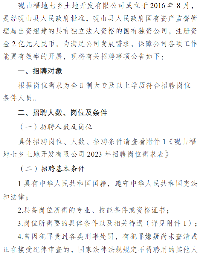 硯山福地七鄉(xiāng)土地開發(fā)有限公司2023年公開招聘工作人員的公告