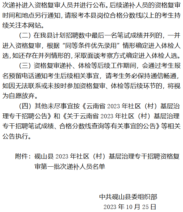 硯山縣2023年社區(qū)(村)基層治理專干招聘