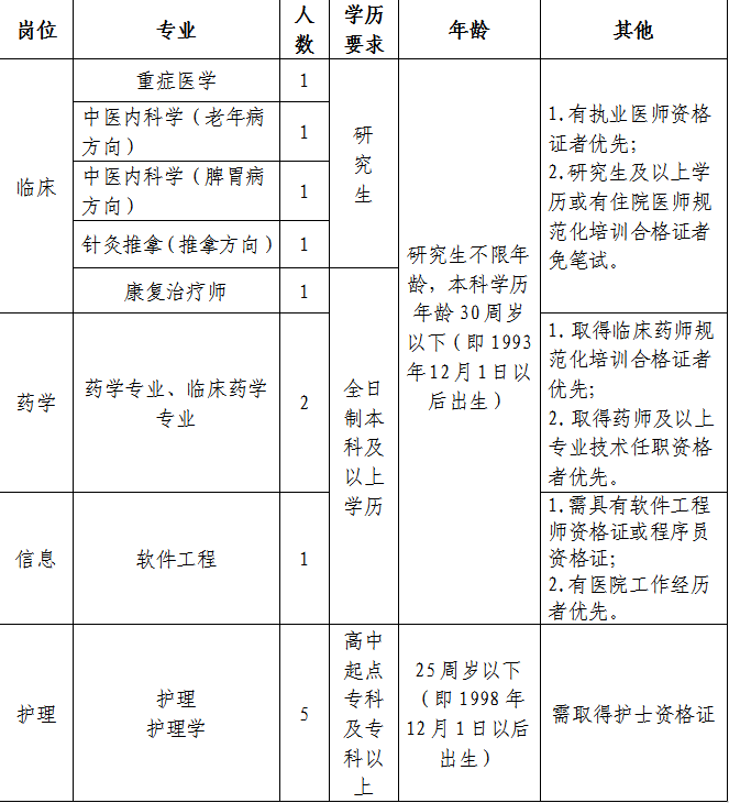 報(bào)名地點(diǎn):尋甸縣中醫(yī)醫(yī)院行政樓三樓人事科。