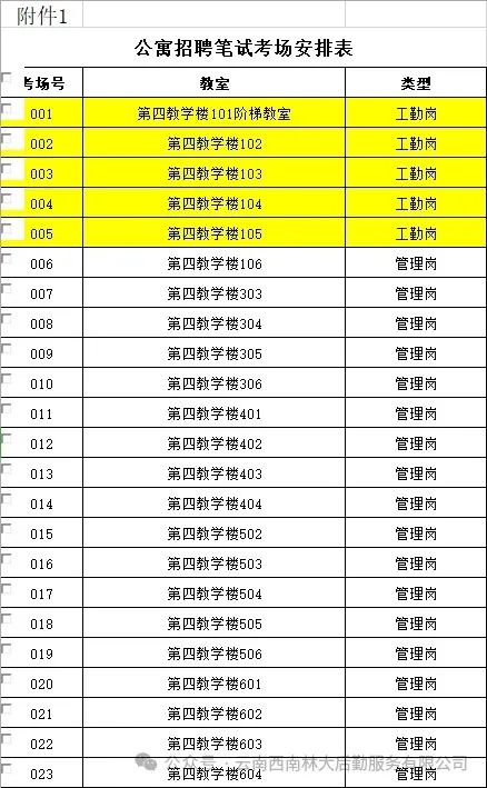 1.公寓招聘筆試考場安排表