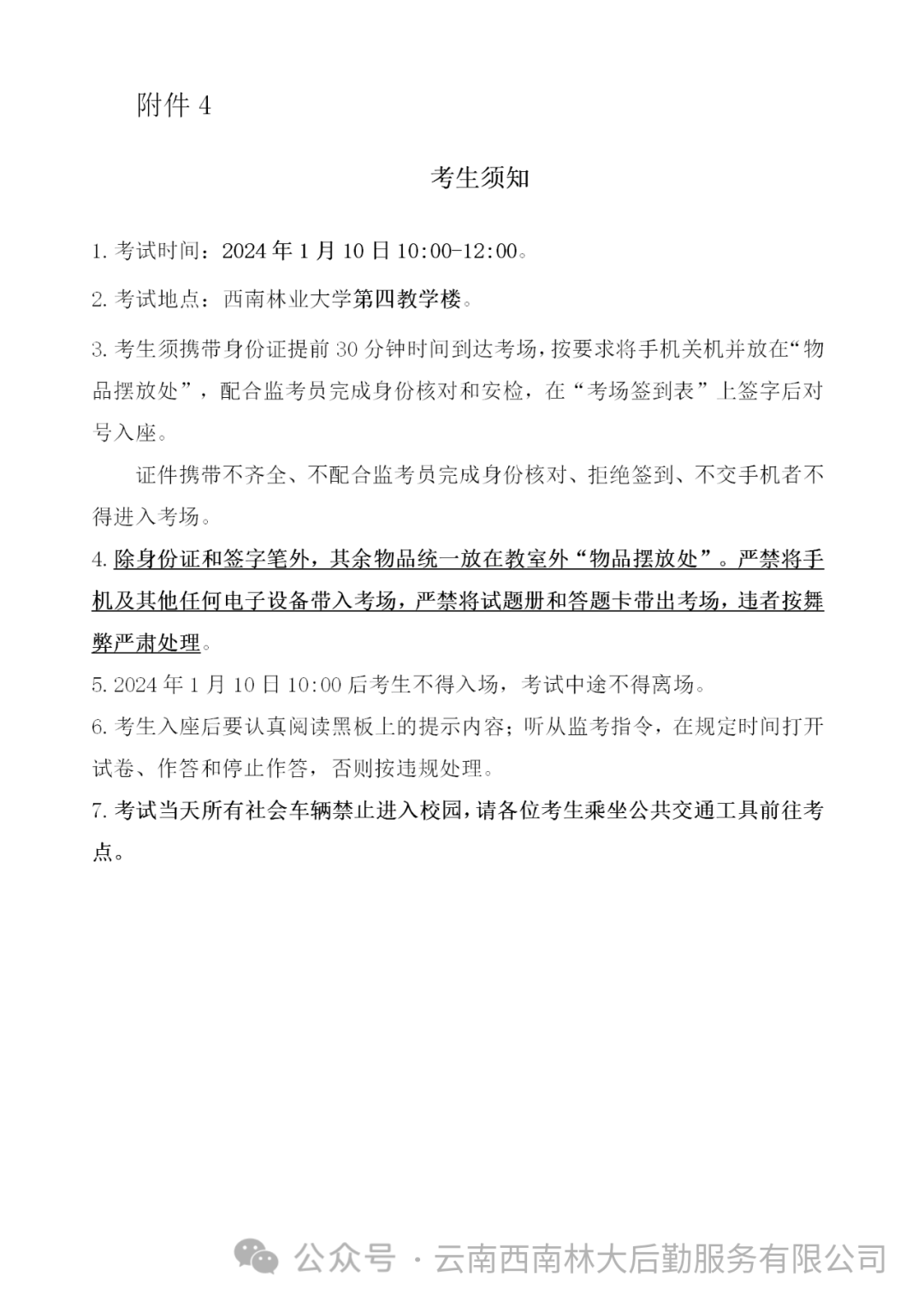 2024年1月11日前將通過“云南西南林大后勤服務(wù)有限公司”微信公眾號通知進(jìn)入面試人員名單及要求,請及時關(guān)注。