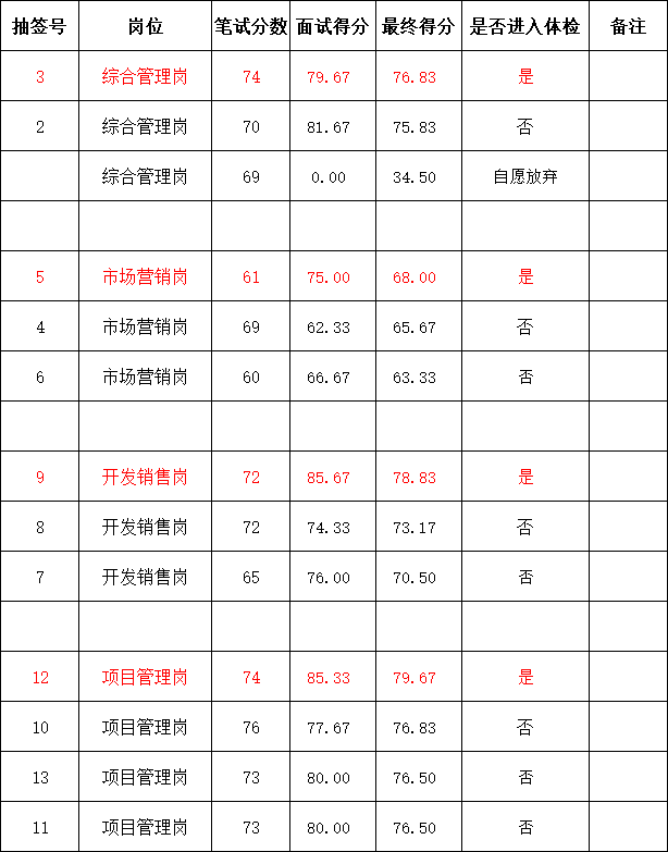 2023年公開招聘工作人員綜合成績公示及進(jìn)入體檢人員的通知