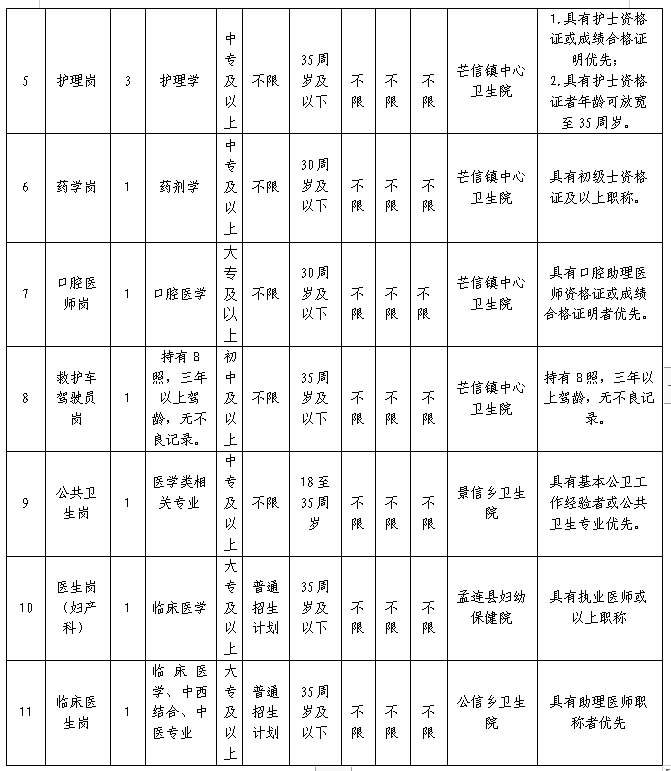 詳見《孟連縣緊密型醫(yī)共體2024年第一次公開招聘編外合同制人員崗位信息表》。